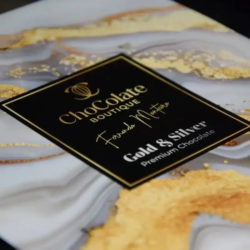 Uma combinação luxuosa de chocolate negro com fava tonka e chocolate de leite com caramelo , adornados com folhas de ouro e prata comestíveis, que proporcionam uma experiência única e sofisticada. Cada bombom é criado para os verdadeiros apreciadores de sabores requintados e exclusivos. Saboreie o luxo em cada mordida.
