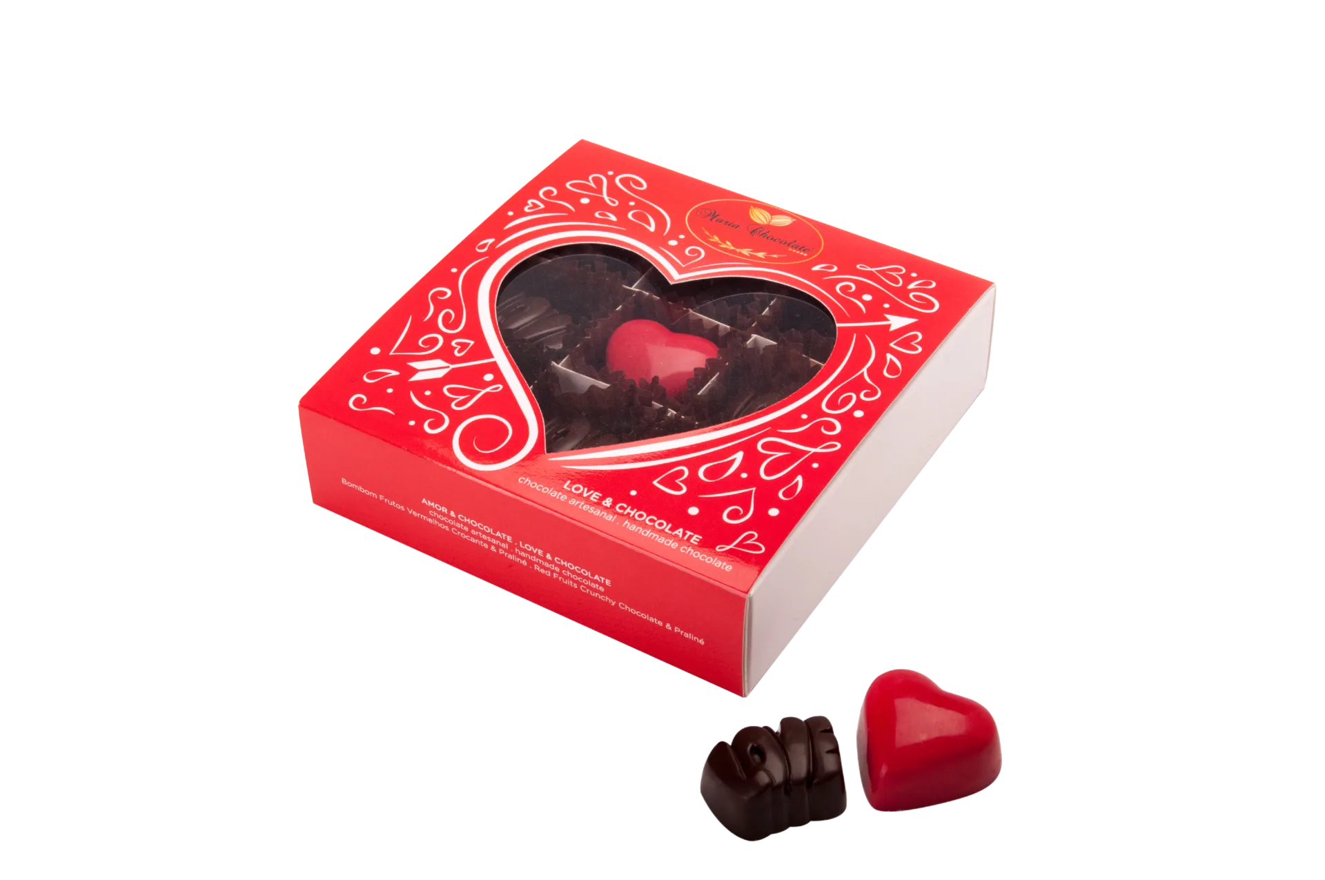 Ingredientes: Cobertura de chocolate negro 58% – Pasta de cacau, açúcar, manteiga de cacau, emulsionante: lecitina de SOJA, aroma natural de baunilha; Recheio crocante de Frutos Vermelhos 40% – Pasta crocante de chocolate branco com frutos vermelhos 20% (Chocolate branco 28% (LEITE em pó, açúcar, MANTEIGA de cacau, emulsionante: lecitina de SOJA, aroma natural de baunilha), óleo vegetal (palma, girassol, palmiste, coco), açúcar, crepe finamente desintegrado 15% (farinha TRIGO, açúcar, MANTEIGA concentrada, LEITE desnatado em pó, farinha de malte de CEVADA, sal), soro de LEITE em pó, frutas vermelhas desidratadas (framboesa 2,8%, morango 1%), MANTEIGA concentrada, amido de milho, xarope de glucose desidratado, acidificante: ácido cítrico, corante: carmim e aroma) e Pasta de chocolate branco (Gordura vegetal (palmiste, coco, palma), açúcar, LEITE gordo em pó, chocolate branco 10% (LEITE gordo em pó, açúcar, manteiga de cacau), LEITE desnatado em pó, emulsionante: lecitina de SOJA, aromas); Corantes: Propelentes (Butano E943a, Isobutano E943b, Propano E944), álcool etílico, corante: E171 e E172. Pode conter vestígios de AMENDOIM, FRUTOS DE CASCA RIJA E OVO. Cacau: 64,5% mínimo no chocolate negro. DECLARAÇÃO NUTRICIONAL (por 100g) Energia: 2285kJ / 549kcal Lípidos: 39,2g dos quais Saturados: 23,4g – Hidratos de carbono: 42,2g dos quais Açúcares: 38,6g – Proteínas: 7g – Sal: 0,229g