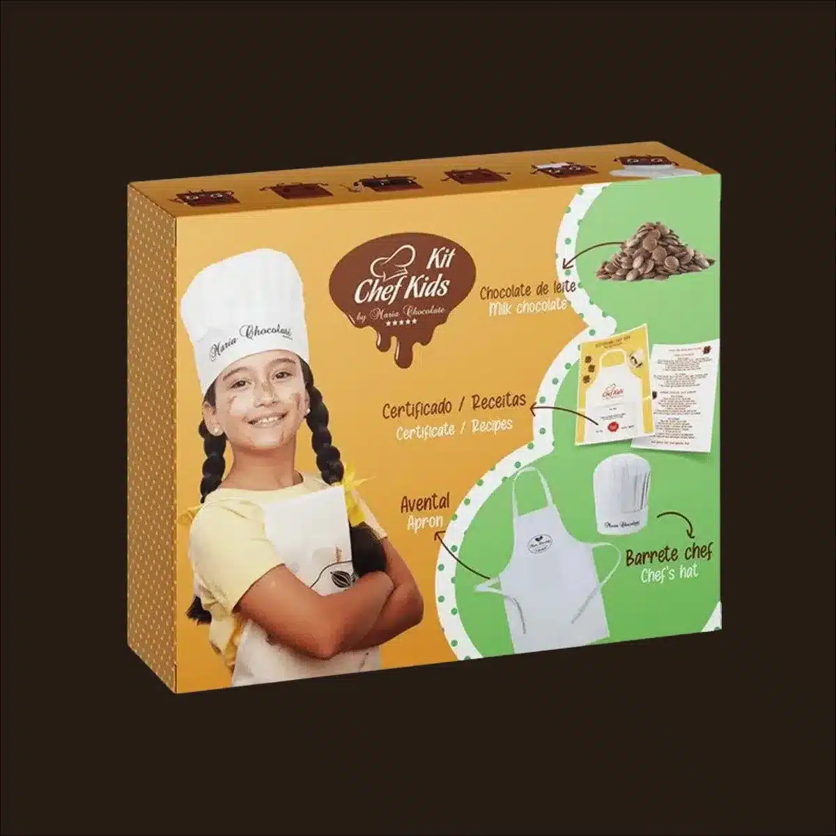 Ótima ocasião para despertar seu talento e se divertir com as suas crianças. O Kit Chef Kids é composto por: