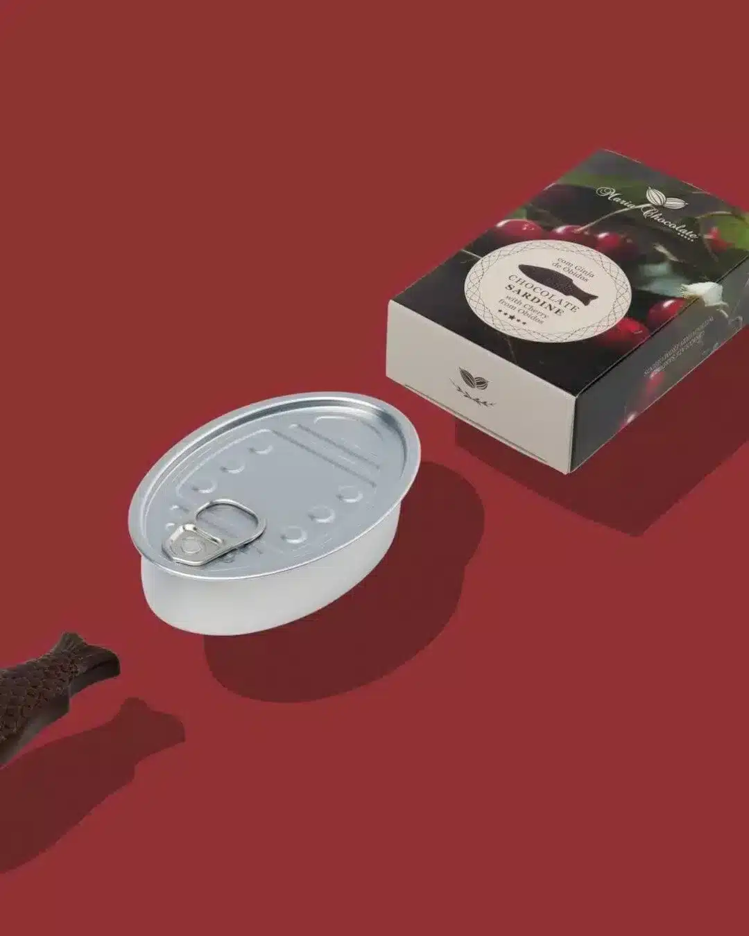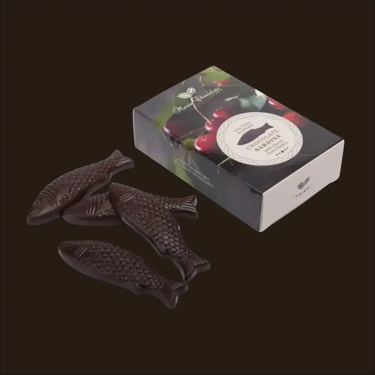 Ingredientes: Cobertura de chocolate negro 60% – Pasta de cacau, açúcar, manteiga de cacau, emulsionante: lecitina de soja, aroma natural de baunilha; Recheio de Ginja 40% – pasta de chocolate (Gordura vegetal (palmiste, coco, palma), chocolate em pó 25% (açúcar, cacau 35% min.), açúcar, cacau magro em pó, leite desnatado em pó, soro de leite em pó, emulsionante: lecitina de soja, aromas) e Licor de Ginja 16% (água, açúcar, álcool, aromas, Corante: E150b, Espessante: E466 e Regulador de Acidez: E330)).