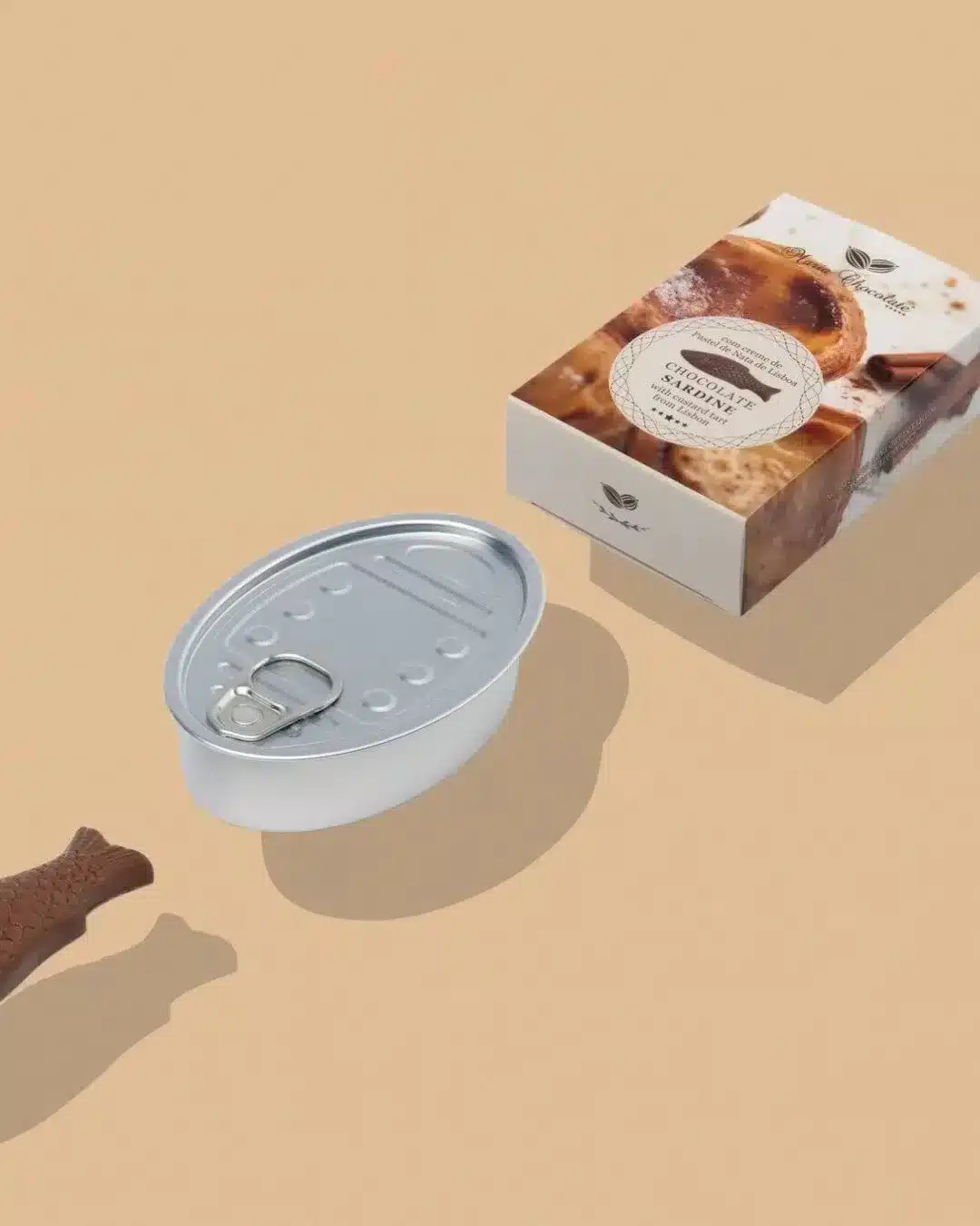Ingredientes: Cobertura de chocolate de leite 60% – açúcar, manteiga de cacau, leite desnatado em pó, pasta de cacau, soro de leite em pó, matéria gorda láctea, leite gordo em pó, emulsionante (lecitina de soja), aroma natural de baunilha, aroma; Recheio Pastel de Nata 40% – Pasta de chocolate branco (Gordura vegetal (palmiste, coco, palma), açúcar, leite gordo em pó, chocolate branco 10% (leite gordo em pó, açúcar, manteiga de cacau), leite desnatado em pó, emulsionante: lecitina de soja, aromas), essência baunilha 5% (água, álcool neutro, corante natural caramelo e substâncias aromáticas) e essência de canela 5% (água, álcool neutro e substâncias aromáticas).