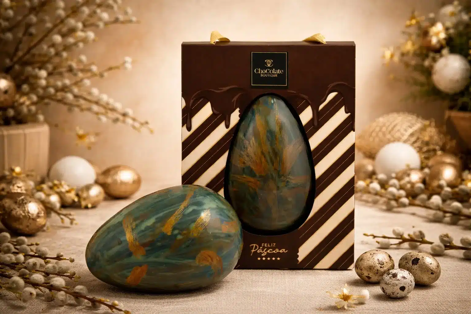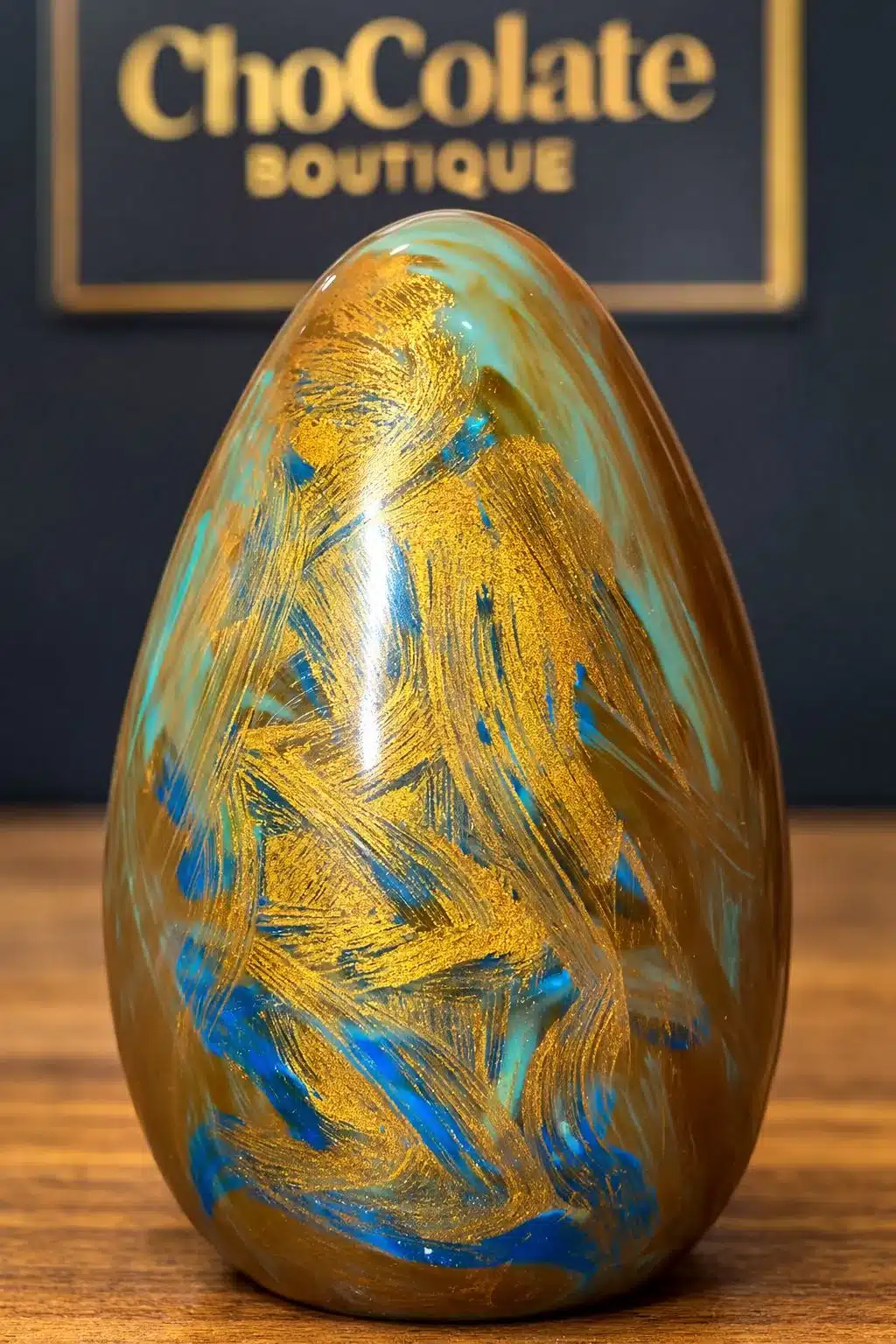 Ovo de chocolate de leite com capa recheada de caramelo toffee, uma tentação doce que conquista a cada pedaço, pintada pelo Chef.