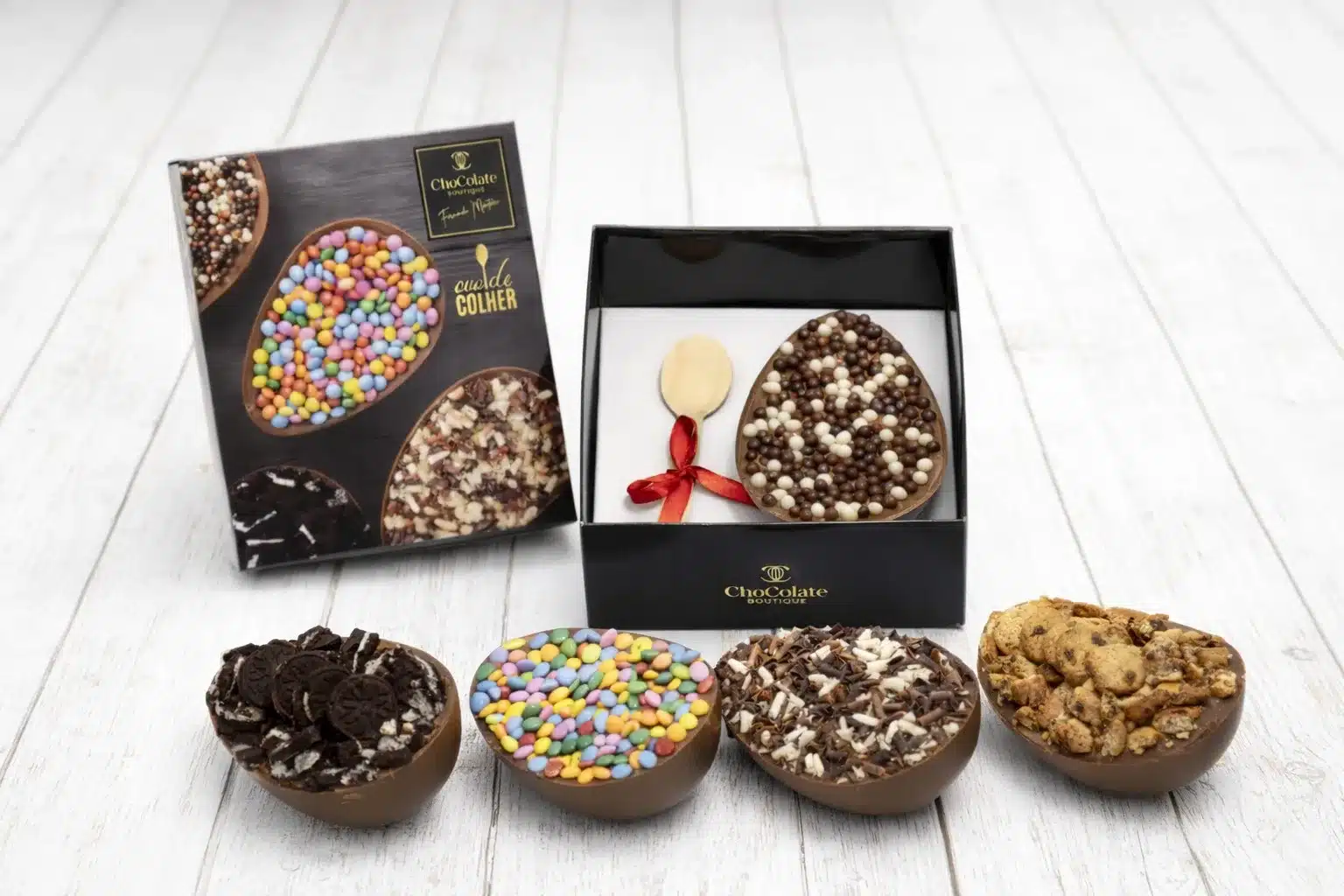 Recheio de brigadeiro 60% (leite condensado (leite, açúcar e lactose), natas (nata (35% M.G.), emulsionante: E 472b e estabilizador: E 407), chocolate em pó (açúcar, cacau magro, emulsionante: lecitina de soja, sal, vitaminas (vitamina C, vitamina E, niacina, ácido pantoténico, vitamina B1 (tiamina), vitamina B6, ácido fólico)) e manteiga sem sal (nata pasteurizada e fermentos lácteos)), Chocolate de leite 23,3% (açúcar, manteiga de cacau, leitedesnatado em pó, pasta de cacau, soro de leiteem pó, matéria gorda láctea, leite gordo em pó, emulsionante (lecitina de soja), aroma natural de baunilha, aroma), raspas de chocolate negro 8,35% (cacau mínimo 48%) (açúcar, pasta de cacau, manteiga de cacau, emulsionante: lecitina de soja, aroma natural de baunilha) e raspas de chocolate branco 8,35% (cacau mínimo 22,5%) (açúcar, leite gordo em pó, manteiga de cacau, emulsionante: lecitina de soja, aroma natural de baunilha).