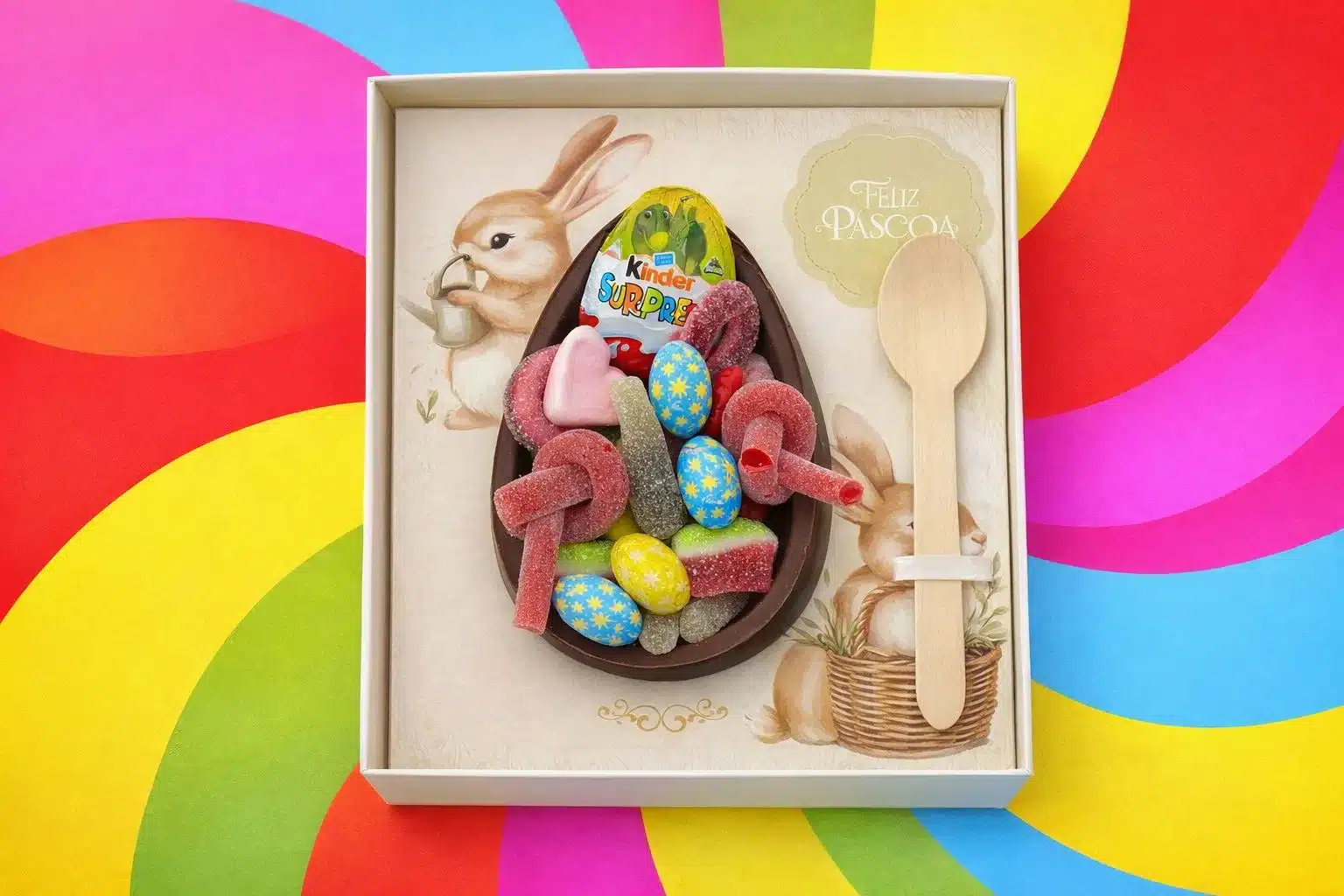 de porco, aroma baunilha, corante, chocolate de LEITE (cacau, açúcar, manteiga de cacau,