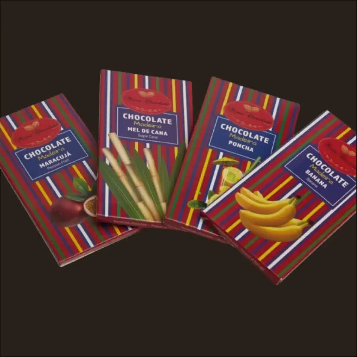 Cobertura de chocolate negro 60% – Pasta de cacau, açúcar, manteiga de cacau, emulsionante: lecitina de soja, aroma natural de baunilha; Recheio de Poncha 40% – Chocolate deleite13% (açúcar, manteiga de cacau, leitedesnatado em pó, pasta de cacau, soro de leiteem pó, matéria gordaláctea, leitegordo em pó, emulsionante (lecitina de soja), aroma natural de baunilha, aroma), Licor Poncha da Madeira 11,8% (aguardente de cana (rum), álcool, água, mel de abelhas, açúcar, citrinos, maracujá, ácido cítrico e corante E102), Natas(Nata(35% M.G.), emulsionante: E472b e estabilizador: E407), Açúcar invertido (açúcar, água, reguladores de acidez: E330 e E500ii),Manteiga sem sal (natapasteurizada e fermentos lácteos), Chocolate negro 2,1% (Pasta de cacau, açúcar, manteiga de cacau, emulsionante: lecitina de soja, aroma natural de baunilha) e Sorbitol líquido (E420) (milho, trigo, água).
