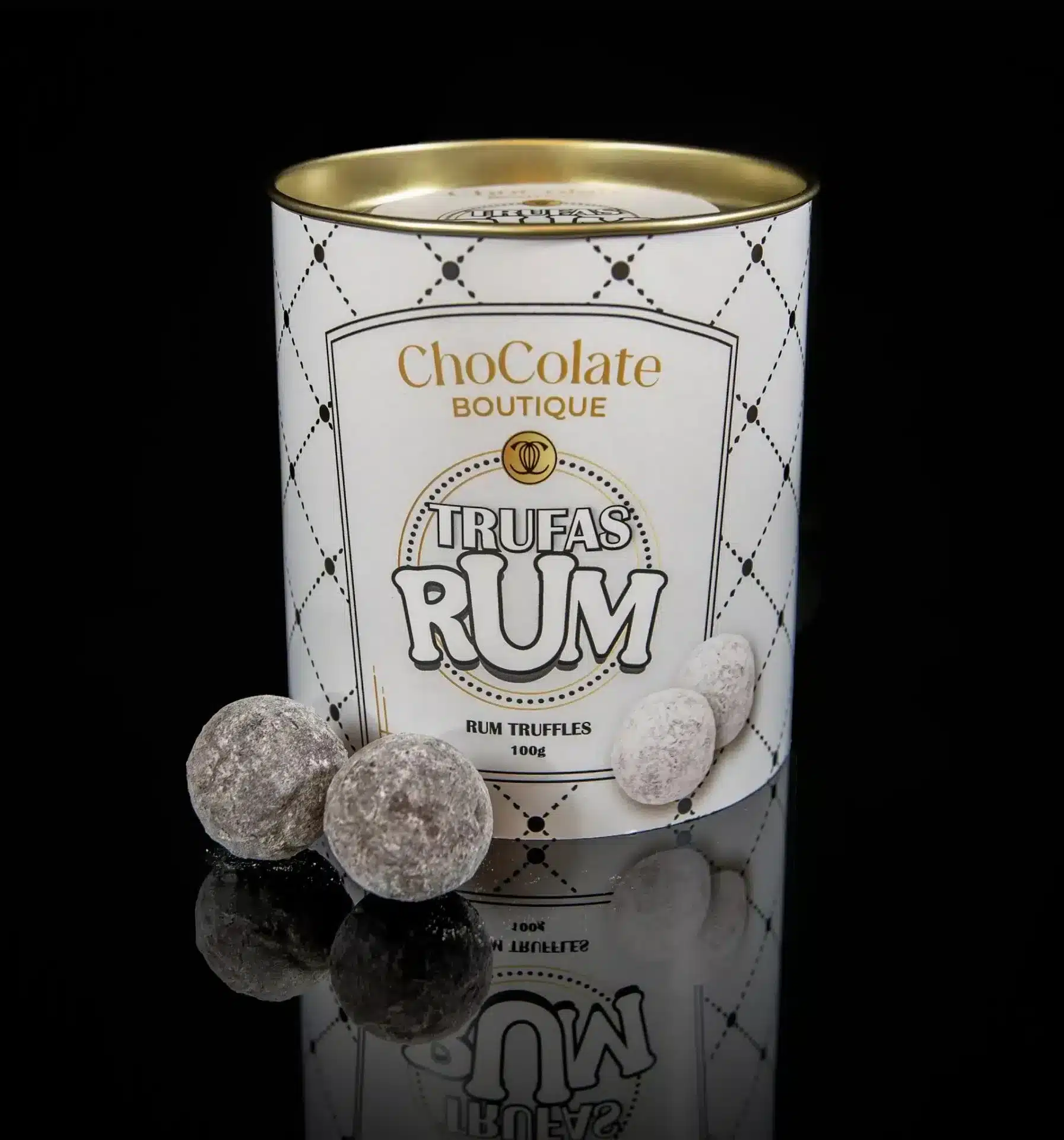 Ingredientes: Cobertura de chocolate negro 58% – pasta de cacau, açúcar, manteiga de cacau, emulsionante: lecitina de soja, aroma natural de baunilha; Recheio de Rum 40% – chocolate de leite 21,3% (açúcar, manteiga de cacau, leite desnatado em pó, pasta de cacau, soro de leite em pó, matéria gorda láctea, leite gordo em pó, emulsionante (lecitina de soja), aroma natural de baunilha, aroma), Rum 8,5%, nata ((nata 35% M.G.), emulsionante: E 472b e estabilizador: E 407), açúcar invertido (açúcar, água, reguladores de acidez (E-330, E-550ii)), manteiga sem sal (nata pasteurizada e fermentos lácteos) e sorbitol líquido (E420) (milho, trigo, água); açúcar em pó.